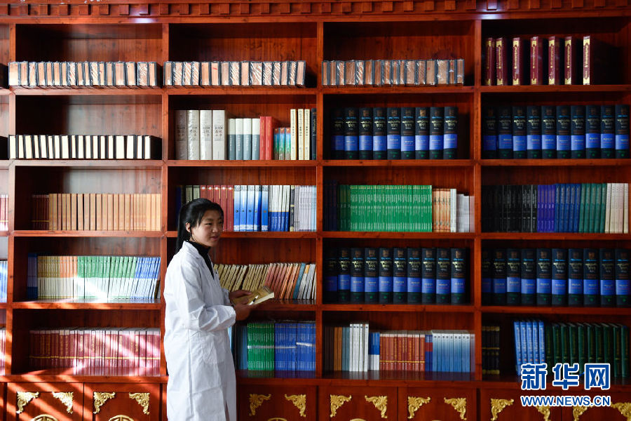 3月16日,在果洛藏族自治州職業(yè)技術(shù)學(xué)校,2020級(jí)藏醫(yī)醫(yī)療與藏藥專業(yè)學(xué)生德吉在借閱書籍。新華社記者 張龍 攝