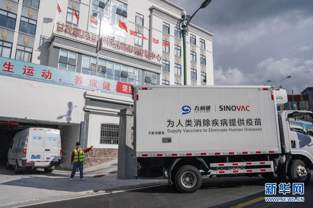 7月22日下午,運送疫苗的冷鏈車歷經(jīng)40多個小時后到達四川甘孜藏族自治州疾控中心。新華社記者 彭子洋 攝