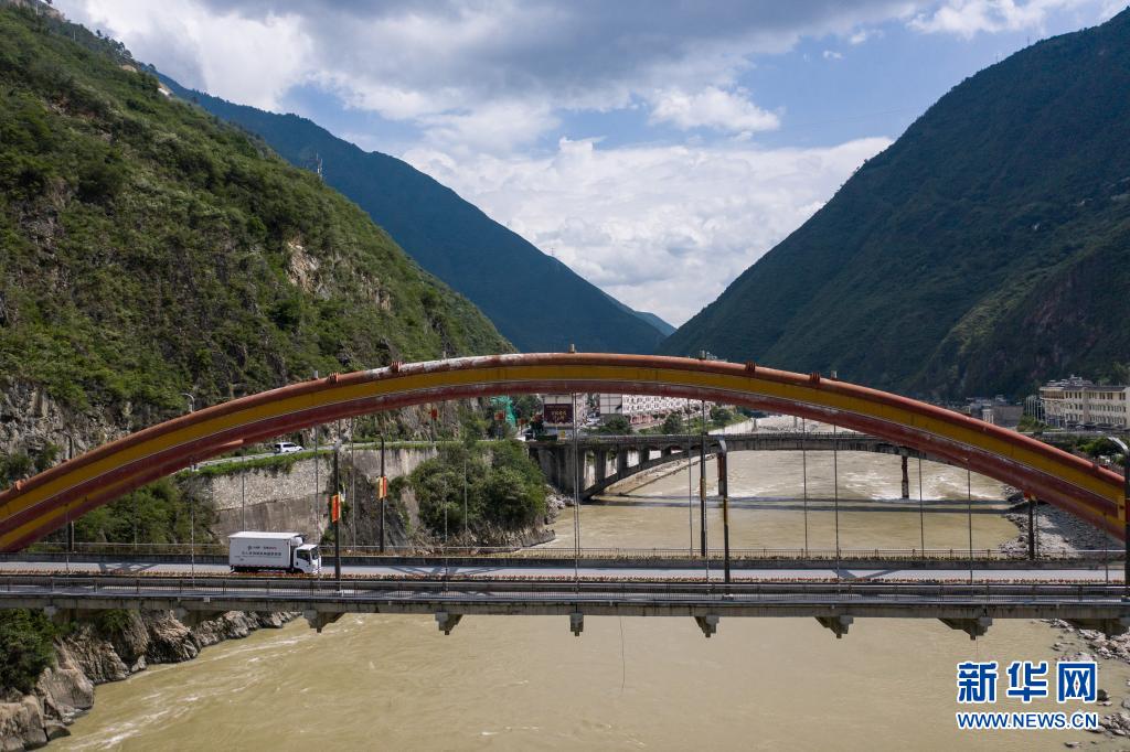 7月22日,從北京一路駛來的疫苗冷鏈車經(jīng)過大渡河。新華社記者 彭子洋 攝