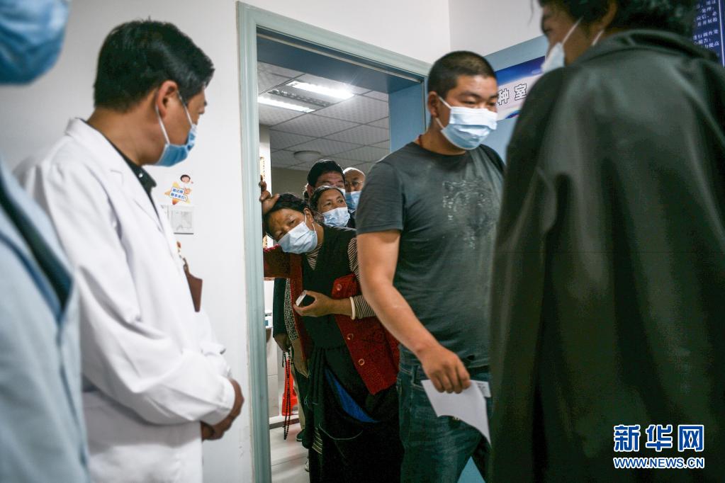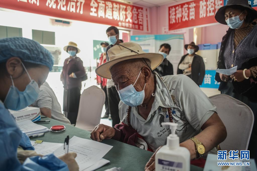 7月24日,在四川甘孜州稻城縣疫苗接種點,當?shù)厝罕娫诮臃N疫苗。新華社記者 彭子洋 攝