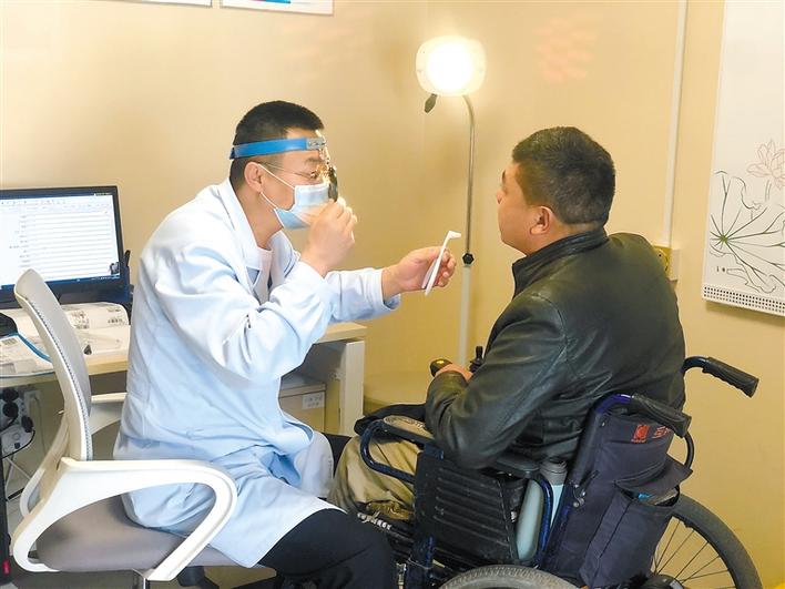 圖為醫(yī)生在為殘疾人體檢。記者 央金 攝