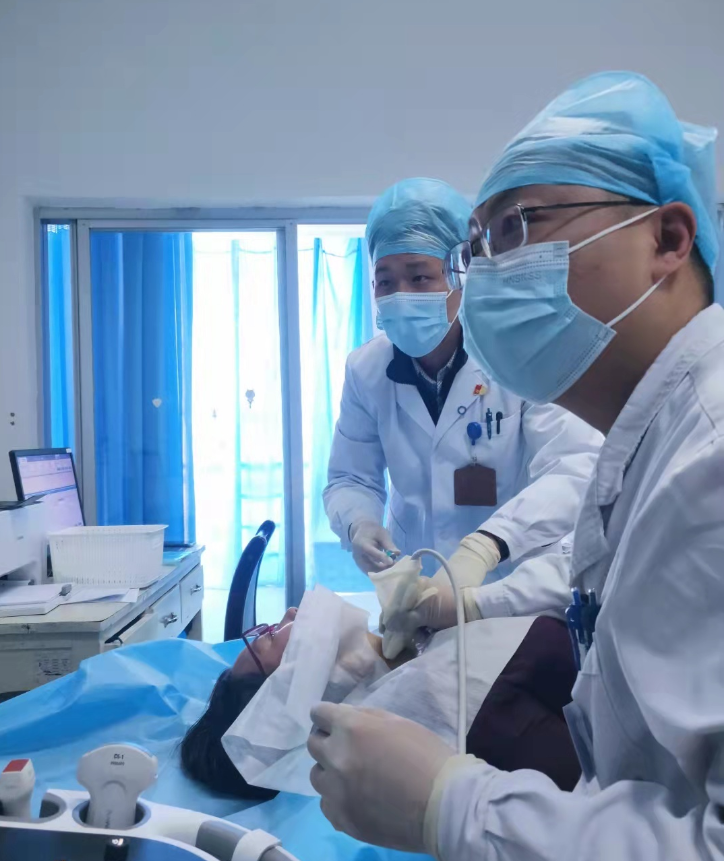 袁曉勇告訴記者,甲狀腺結(jié)節(jié)是一種高發(fā)疾病,絕大多數(shù)都是良性結(jié)節(jié),但少數(shù)結(jié)節(jié)會(huì)被超聲誤判為甲狀腺癌。為了減少不必要的甲狀腺開刀手術(shù),在北京大學(xué)第一醫(yī)院內(nèi)分泌科和自治區(qū)人民醫(yī)院內(nèi)分泌科的幫助下,袁曉勇在援藏期間帶出了能獨(dú)立開展超聲引導(dǎo)下細(xì)針穿刺的專業(yè)團(tuán)隊(duì)。到今年8月,該團(tuán)隊(duì)每周已能完成1到2例超聲引導(dǎo)下甲狀腺細(xì)針穿刺病理活檢檢查。