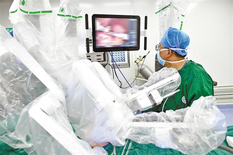 圖為自治區(qū)人民醫(yī)院普通外科主任巴桑頓珠運(yùn)用第四代手術(shù)機(jī)器人開展外科手術(shù)。