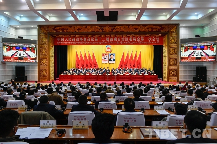 圖為政協(xié)第十二屆西藏自治區(qū)委員會(huì)第一次會(huì)議閉幕會(huì)現(xiàn)場 攝影:次旦拉姆