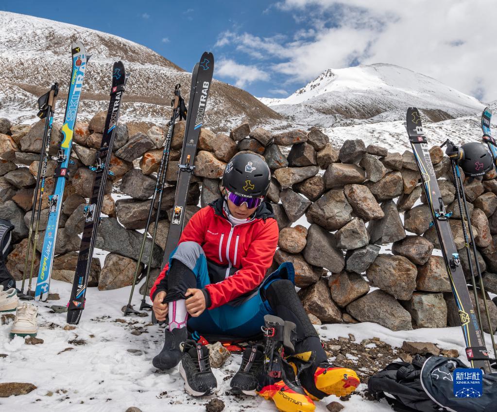在西藏拉薩市當雄縣羊八井鎮(zhèn),玉珍拉姆穿戴訓練裝備(5月2日攝)。新華社記者 孫非 攝