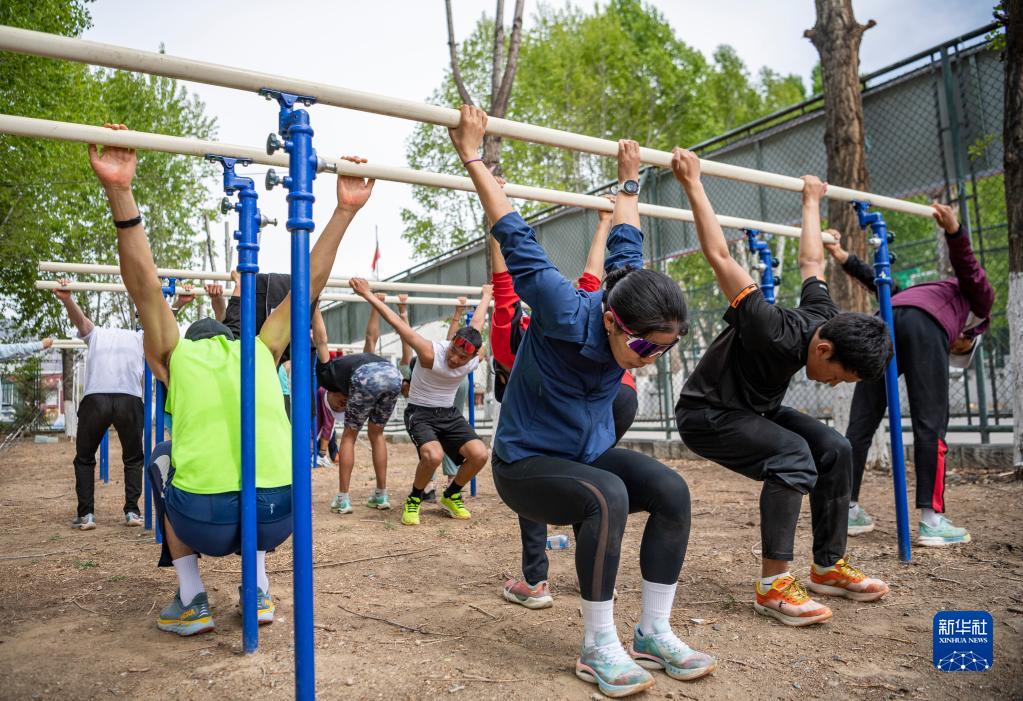 在西藏拉薩市當雄縣羊八井鎮(zhèn),玉珍拉姆(中)在訓練休息時和隊友聊天(5月2日攝)。新華社記者 孫非 攝