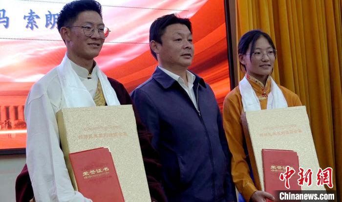 圖為獲得本屆大賽一等獎的主講人領獎。 貢桑拉姆 攝