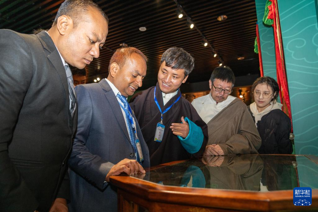 首屆《四部醫(yī)典》國際學術交流會參會嘉賓參觀《四部醫(yī)典》專題展覽(10月18日攝)。新華社記者 旦增尼瑪曲珠 攝