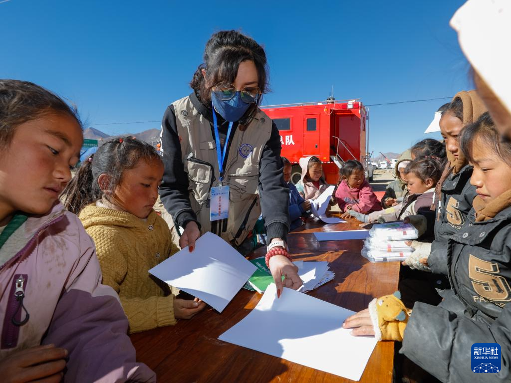 在西藏定日縣曲洛鄉(xiāng)措昂村受災(zāi)群眾安置點,中國科學(xué)院心理研究所應(yīng)急心理救援隊的專家譚惜仁組織安置點內(nèi)的80余名孩子們畫畫、唱歌、運動,為他們進(jìn)行心理疏導(dǎo)。孩子們親切地稱她為“甜心姐姐”。譚惜仁曾參加過四川汶川地震、青海玉樹地震等震后心理救援工作,經(jīng)驗豐富。