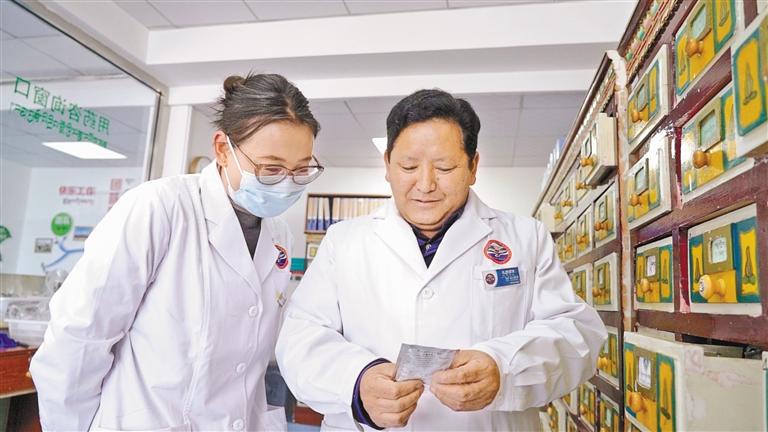 扎西頓珠(右)正在指導(dǎo)年輕醫(yī)生。 記者 洛桑旦增 達(dá)珍 永青 攝