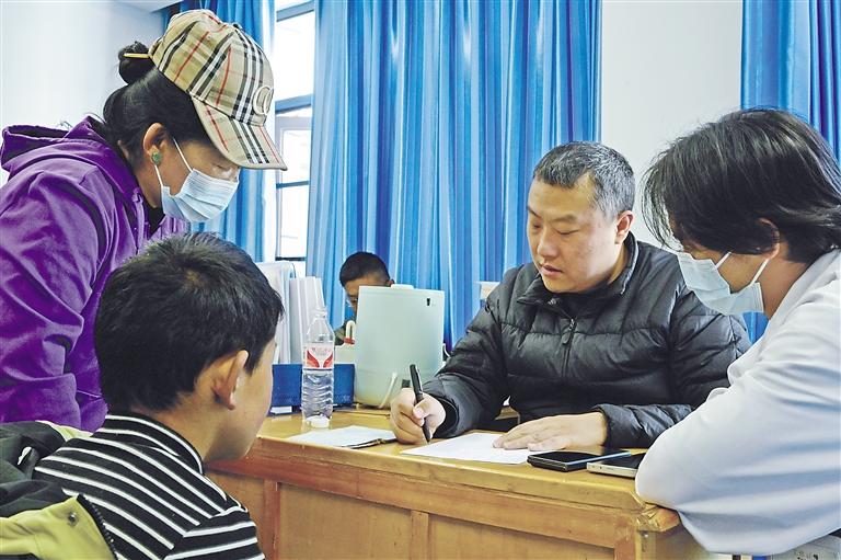 圖為在拉薩市城關(guān)區(qū)人民醫(yī)院內(nèi),江蘇“心佑工程”團隊的醫(yī)生對前來就診的兒童進行病史詢問、病例檢查。記者 王敏 洛桑 攝