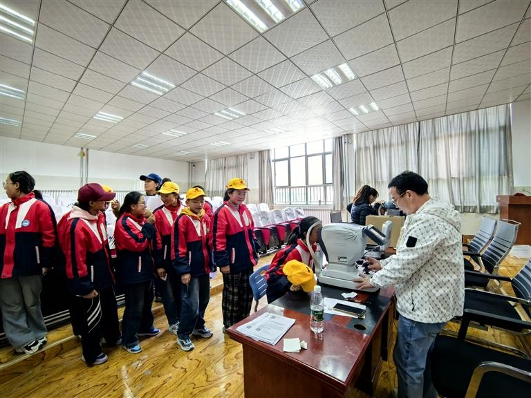 日前,林周縣教育(體育)局聯(lián)合達孜丹揚眼鏡城運營管理有限公司,為全縣11所中小學(xué)7000余名學(xué)生開展視力檢測?;顒又?,工作人員使用專業(yè)設(shè)備進行裸眼視力和屈光檢測,并為視力異常學(xué)生提出復(fù)診建議。