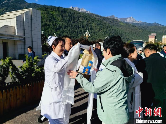 迭部縣人民醫(yī)院的醫(yī)護(hù)人員20日為“同心·共鑄中國(guó)心”志愿者送行。他們表示,志愿者們以高度的責(zé)任感和使命感,深入該醫(yī)院開(kāi)展技術(shù)幫扶,進(jìn)行高難度手術(shù)示范,通過(guò)手把手培訓(xùn)推動(dòng)學(xué)科建設(shè)水平提升,捐贈(zèng)醫(yī)療物資及科普資料,助力打造“帶不走的醫(yī)療隊(duì)”。