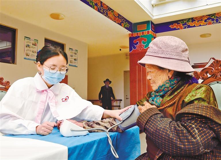 圖為醫(yī)生為老年人測(cè)量血壓。記者 旦增蘭澤 攝