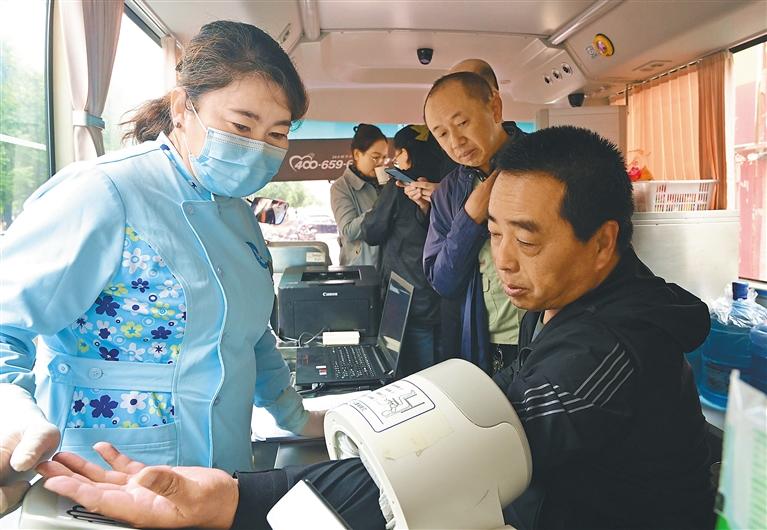 圖為醫(yī)護(hù)人員在為群眾測量血壓。記者 白瑪澤旺 攝