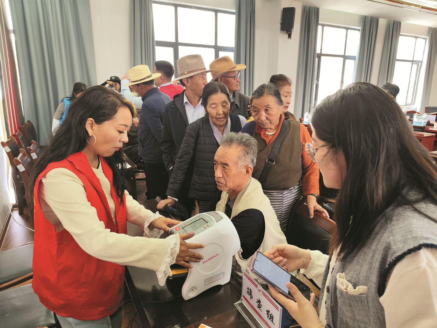 圖為志愿者為老人們進行動脈硬化篩查。拉薩融媒記者 齊永昌 攝