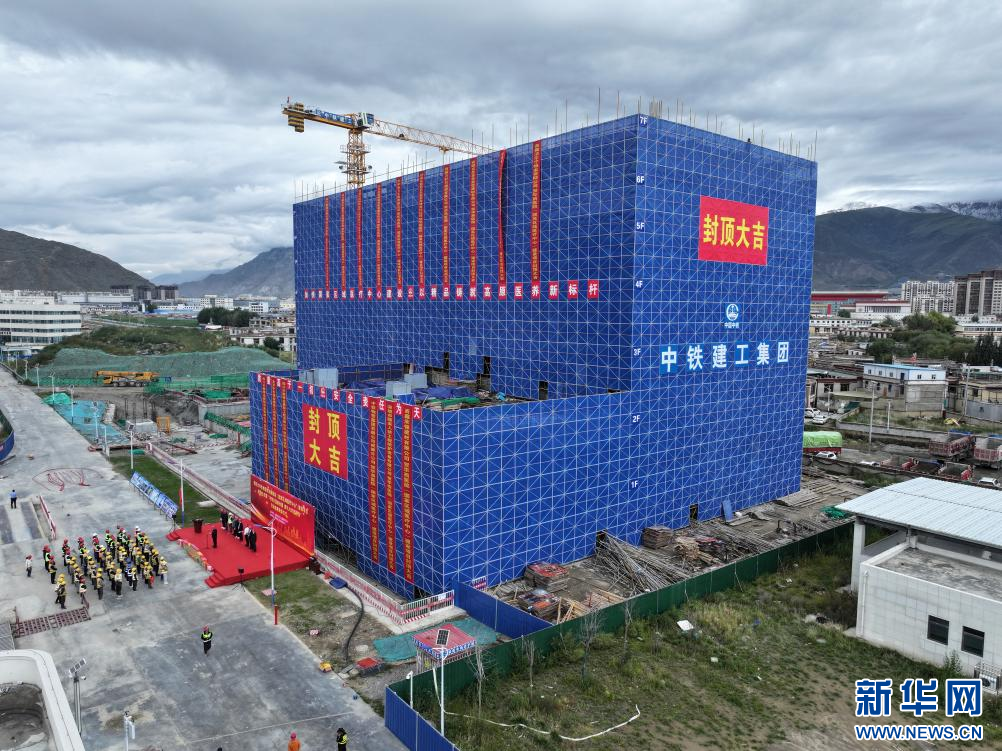 四川大學(xué)華西醫(yī)院西藏醫(yī)院(國家區(qū)域醫(yī)療中心)主體結(jié)構(gòu)封頂現(xiàn)場。(中鐵建工集團供圖)