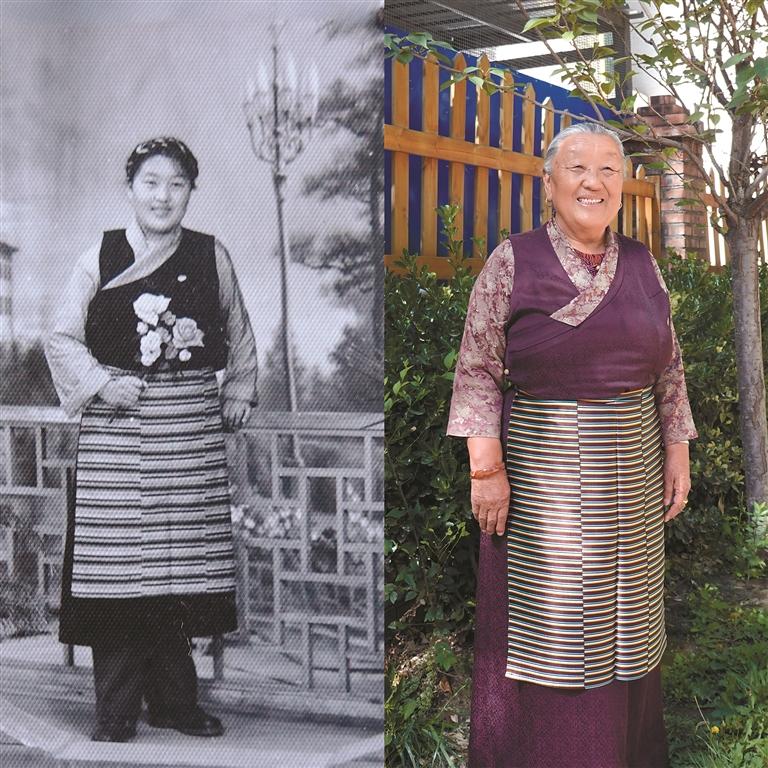 圖①:28歲的次仁卓瑪在河南進(jìn)修時(shí)留影。 (由受訪者提供)圖②:79歲的次仁卓瑪在拉薩新居留影。記者 嘎娃白瑪 丹增朗賽 攝