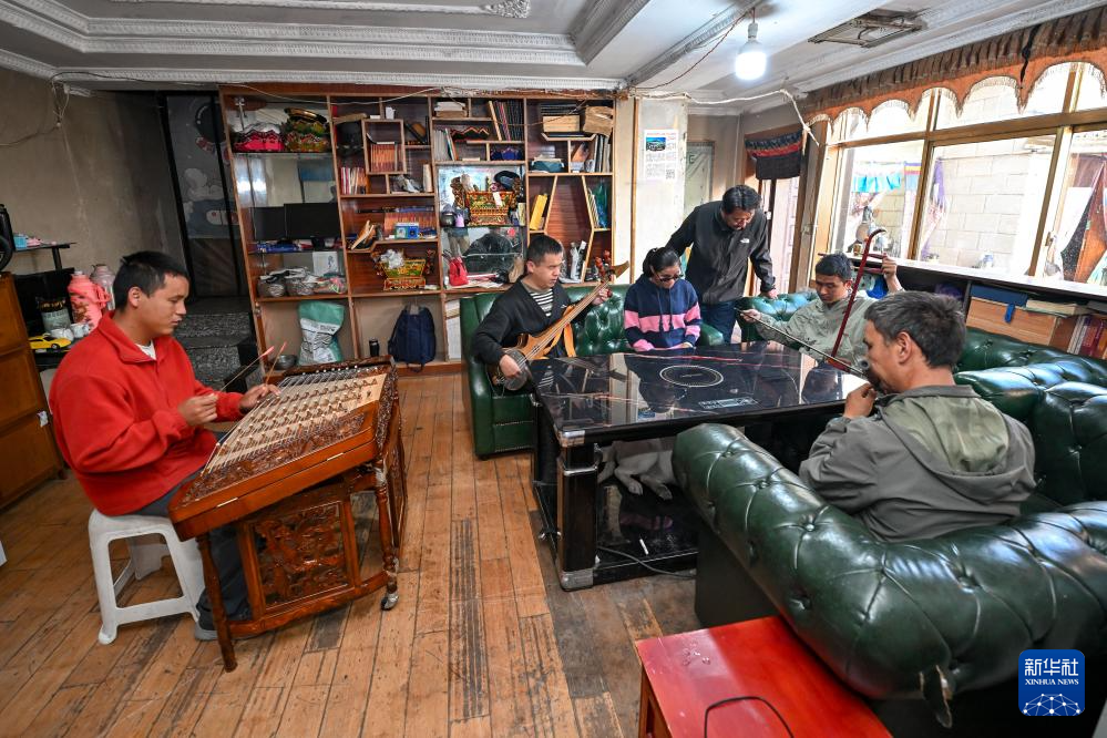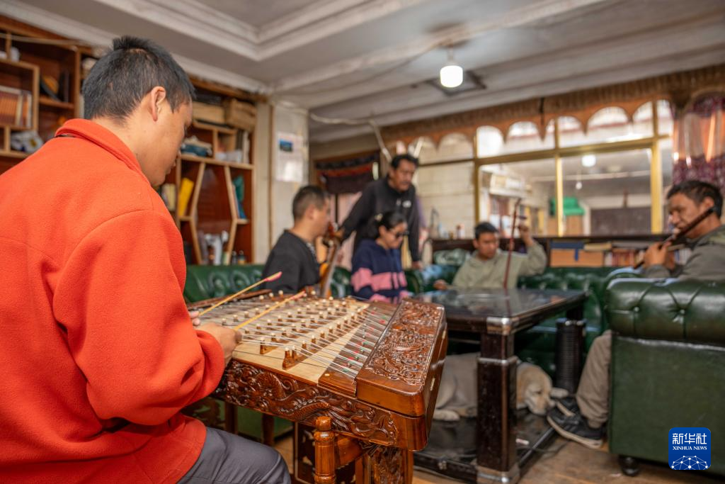 2025年10月11日,達瓦次仁在練習(xí)演奏揚琴。