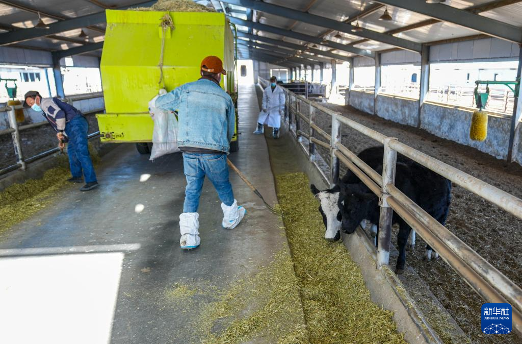 12月3日,克隆樟木牛母犢在西藏動物疫控中心(區(qū)畜牧總站)曲水實驗站牛場吃草料。新華社記者 丁增尼達 攝