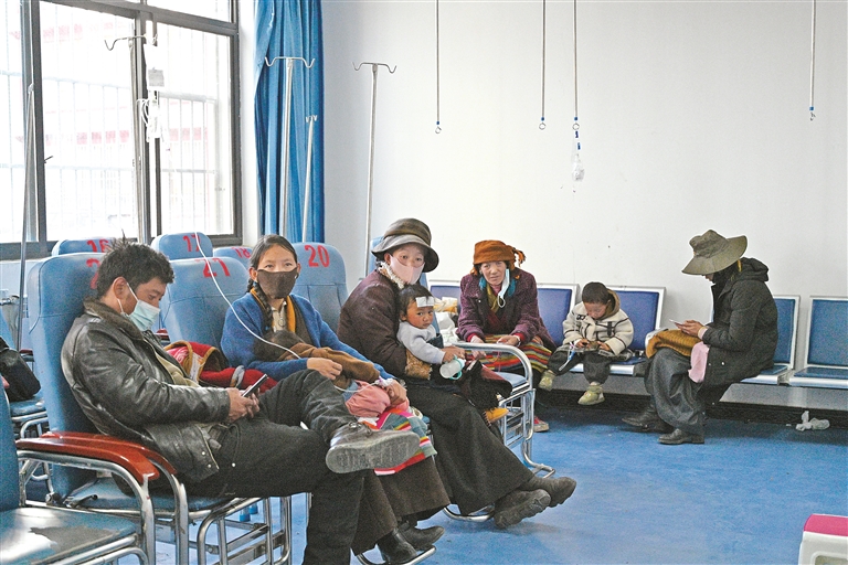 圖為桑珠孜區(qū)中心醫(yī)院內(nèi),前來(lái)看病的群眾在輸液。記者 扎西頓珠 攝