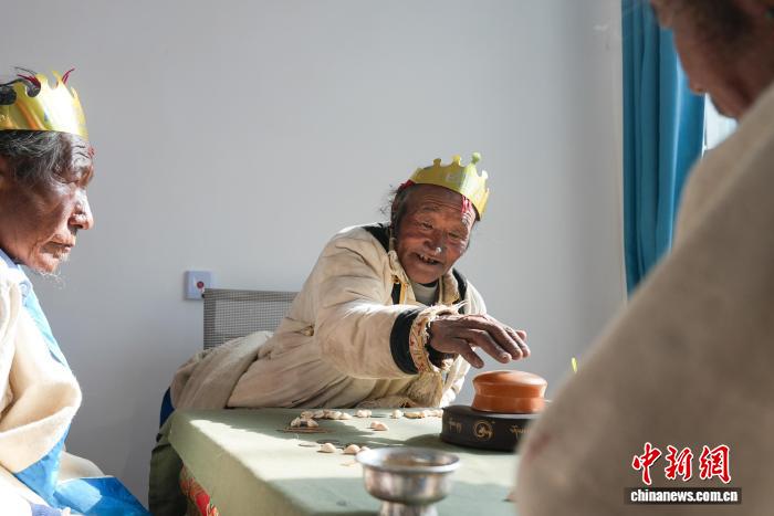 圖為西藏定結(jié)縣郭加鄉(xiāng)切村,農(nóng)村幸福院里,老人們在玩骰子。貢確 攝