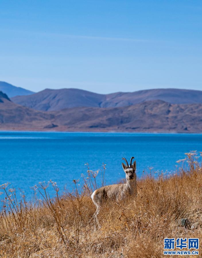 這是1月10日拍攝的羊卓雍錯(cuò)岸邊的藏原羚。新華社記者 孫非 攝
