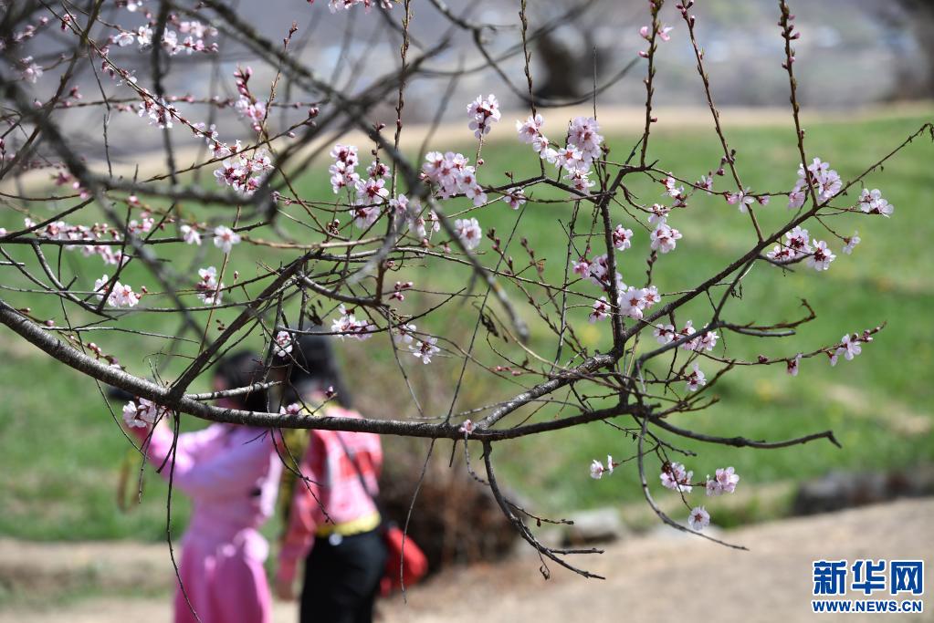 3月27日,游客在林芝市嘎拉村欣賞桃花時(shí)留影。新華社記者 孫瑞博 攝