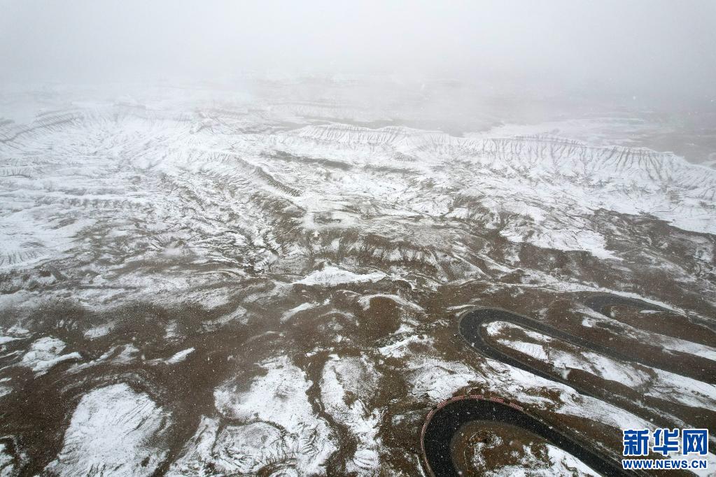 5月20日拍攝的雪中的札達(dá)土林景色(無人機(jī)照片)。新華社記者 孫瑞博 攝