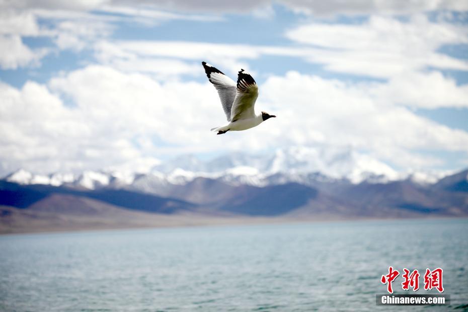 6月初,紅嘴鷗在西藏納木錯上空翱翔。隨著氣溫逐漸升高,納木錯迎來旅游旺季。納木錯藏語意為“天湖”,是中國第三大咸水湖,位于藏北高原東南部,念青唐古拉山峰北麓,拉薩市當(dāng)雄縣和那曲市班戈縣境內(nèi),湖面海拔4718米。 中新社記者 陳小愿 攝