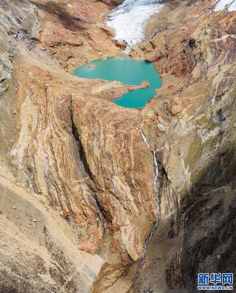 鳥瞰雅拉香布雪山腳下的冰川融水湖(6月4日攝,無(wú)人機(jī)照片)。新華社記者 洛卓嘉措 攝