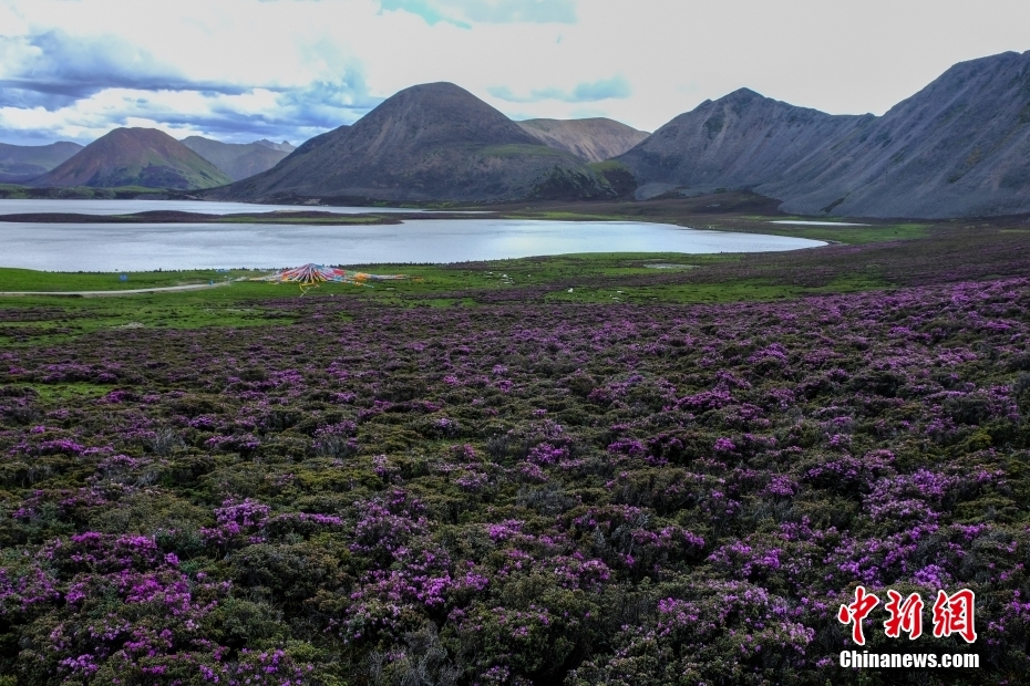 6月23日,思金拉措湖畔紫色鮮花盛開(kāi),景色秀麗。思金拉措位于西藏墨竹工卡縣日多鄉(xiāng),海拔4500多米,周邊群峰簇?fù)?,地形猶如聚寶盤(pán),不少民眾將其稱為西藏的“財(cái)神湖”。 中新社記者 江飛波 攝