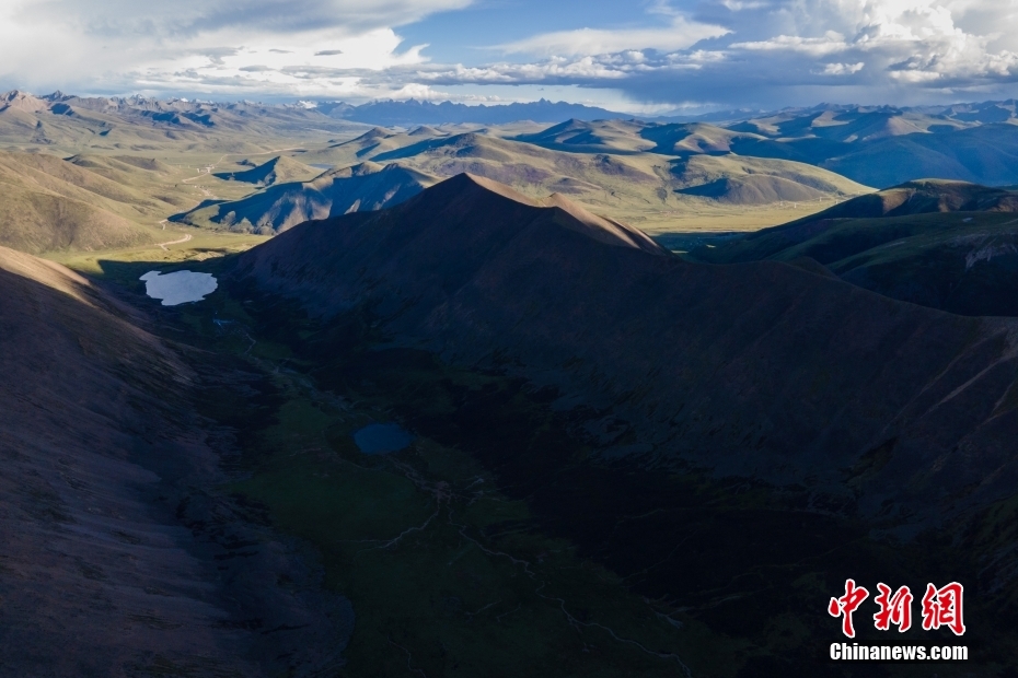 6月23日,思金拉措湖邊高原山脈風(fēng)光。思金拉措位于西藏墨竹工卡縣日多鄉(xiāng),海拔4500多米,周邊群峰簇?fù)?,地形猶如聚寶盤(pán),不少民眾將其稱為西藏的“財(cái)神湖”。(無(wú)人機(jī)照片) 中新社記者 江飛波 攝