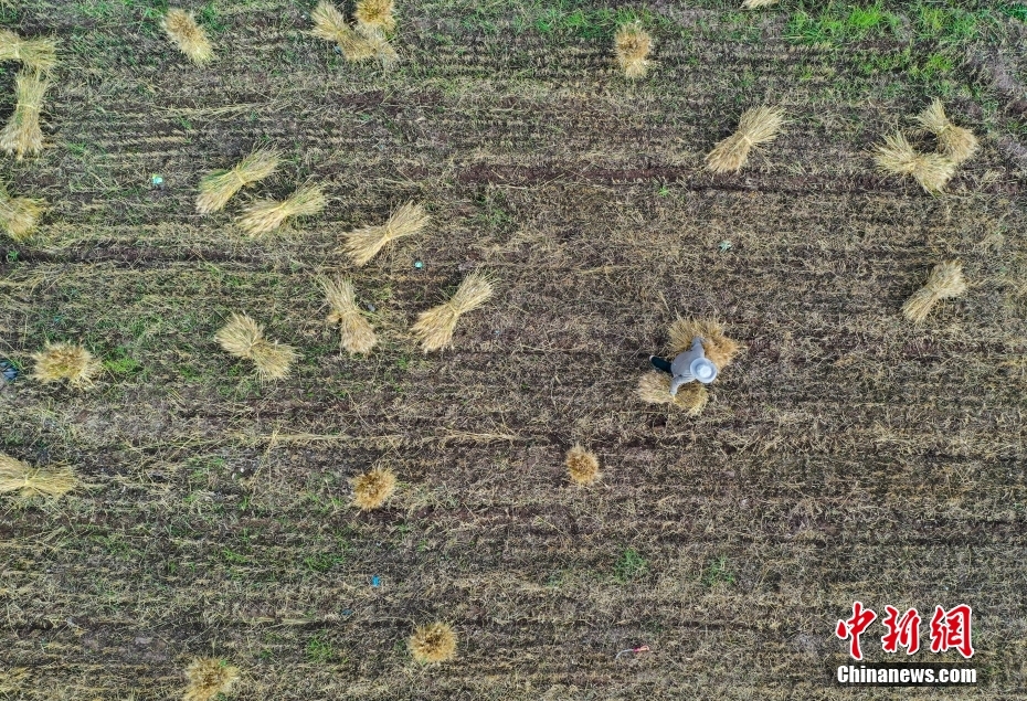 9月8日,西藏自治區(qū)拉薩市達孜區(qū)境內的農民在搶收青稞。金秋時節(jié),拉薩河谷一帶青稞成熟,農民在青稞田忙碌,一片繁忙景象。(無人機照片) 中新社記者 貢嘎來松 攝