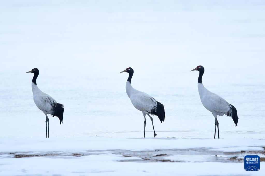 近日,在位于青海省果洛藏族自治州瑪多縣的三江源國(guó)家公園黃河源園區(qū)內(nèi),數(shù)只黑頸鶴在此棲息覓食。 黑頸鶴是國(guó)家一級(jí)重點(diǎn)保護(hù)野生動(dòng)物,主要棲息于海拔2500米至5000米的高原沼澤地、湖泊及河灘地帶,在我國(guó)主要分布在青海、西藏、甘肅和四川北部一帶。