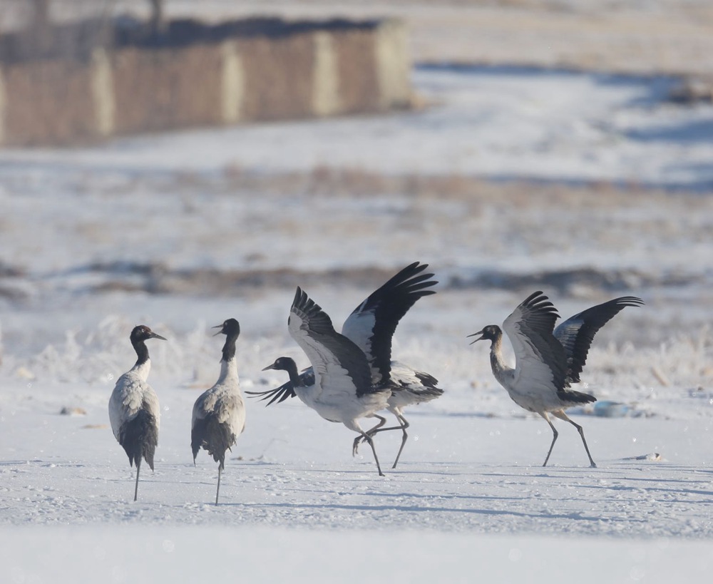 近日,西藏拉薩市林周縣迎來降雪,位于林周縣境內(nèi)的黑頸鶴保護區(qū)變成了粉妝玉砌的世界,黑頸鶴與白皚皚的大雪相互點綴,構(gòu)建出一幅自然和諧的冬日畫卷。