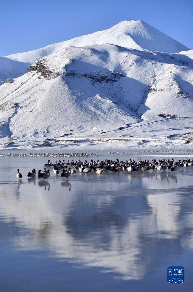 在拉薩市林周縣境內越冬的黑頸鶴(2月22日攝)。新華社記者 姜帆 攝