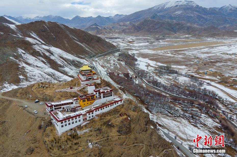 2月23日,航拍西藏林周縣楚杰寺雪后風光。 澎波河是拉薩河的主要支流之一,位于拉薩市林周縣,是拉薩青稞主產(chǎn)區(qū)。近日,澎波河谷迎來大范圍降雪,河灘、農(nóng)田、村落、山谷等均被積雪覆蓋,猶如披上了一層“白紗”,一派高原冰雪風光,十分壯美。江飛波 攝