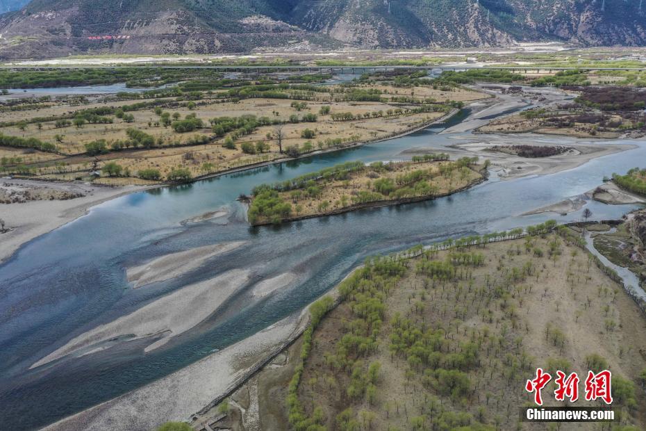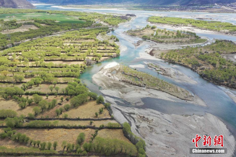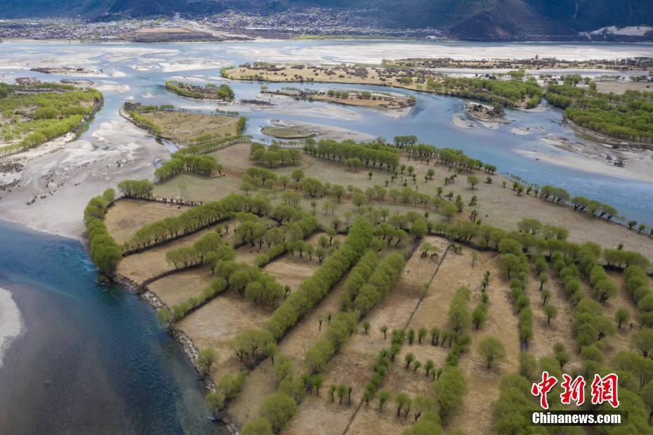 3月31日,西藏自治區(qū)林芝市雅尼國家濕地公園的春日風(fēng)光。雅尼國家濕地公園生態(tài)保護(hù)區(qū)位于林芝市巴宜區(qū)和米林縣境內(nèi)的雅魯藏布江與尼洋河交匯處。(無人機(jī)照片) 中新社記者 貢嘎來松 攝