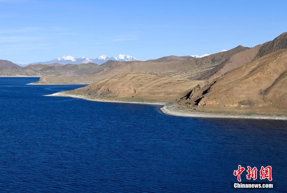 站在直拉山口俯瞰羊卓雍措,深邃藍的湖水似鑲嵌山間的藍寶石,與遠處的庫拉崗日雪山形成一幅壯美圖卷。圖為羊卓雍措。 李林 攝
