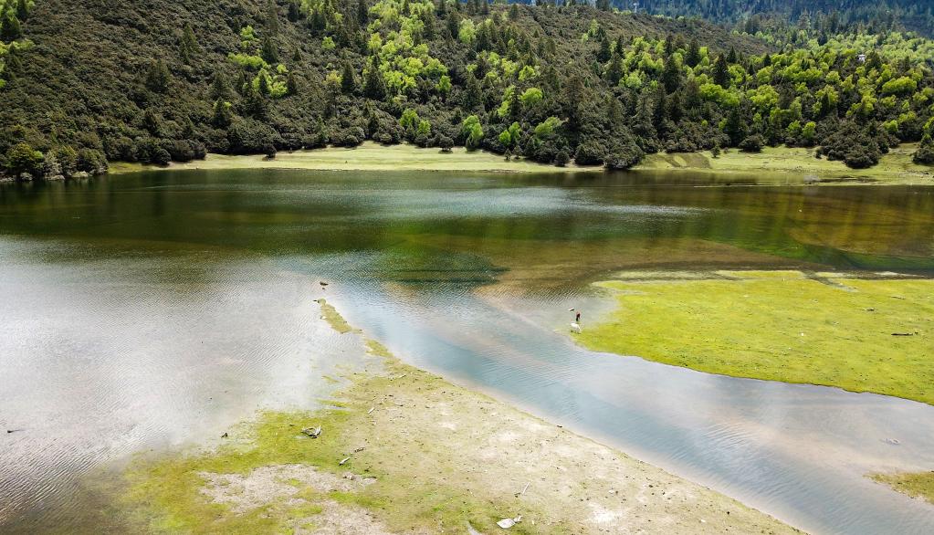 這是位于林芝市巴宜區(qū)魯朗鎮(zhèn)的一片濕地(5月31日攝,無人機照片) 。新華社記者 姜帆 攝