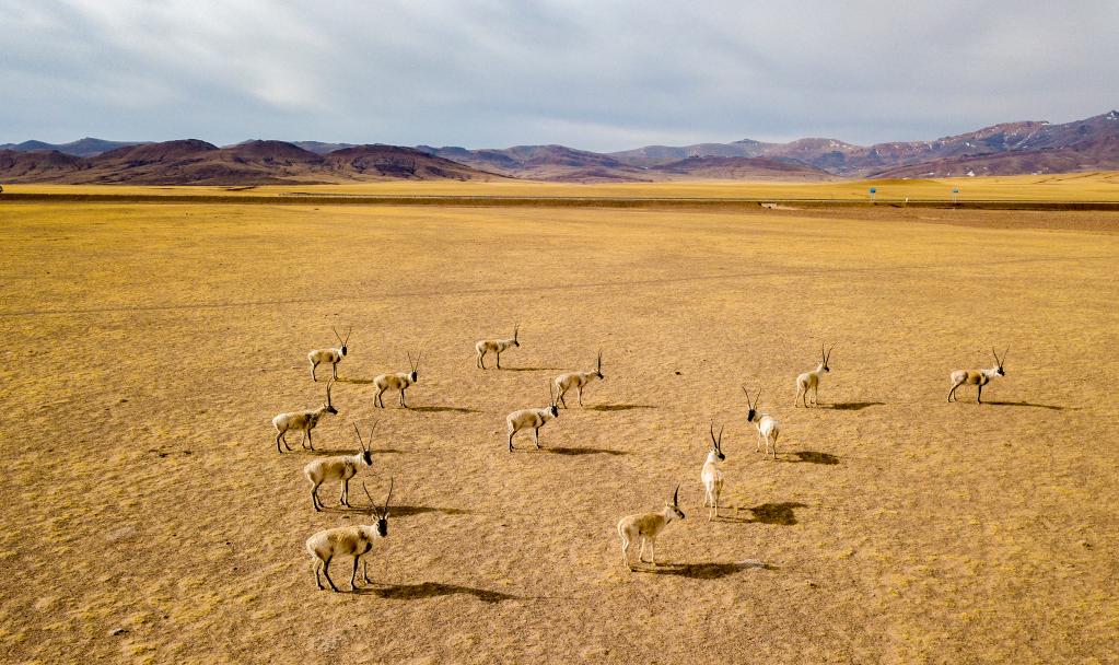這是在阿里地區(qū)改則縣拍攝到的藏羚羊(4月13日攝,無人機照片)。公報顯示,藏羚羊種群數(shù)量由20世紀最低谷時的7萬余只增至30萬余只。新華社記者 姜帆 攝