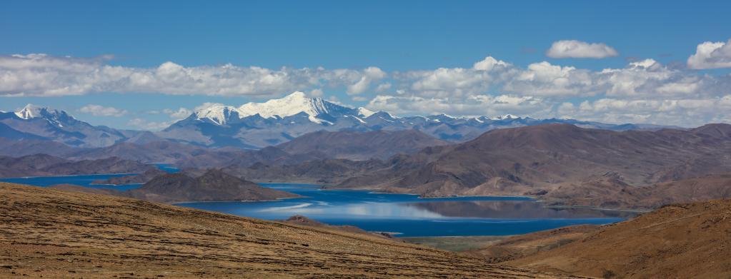 從埡口遠眺位于山南市浪卡子縣的羊卓雍措(6月3日攝)。新華社記者 姜帆 攝