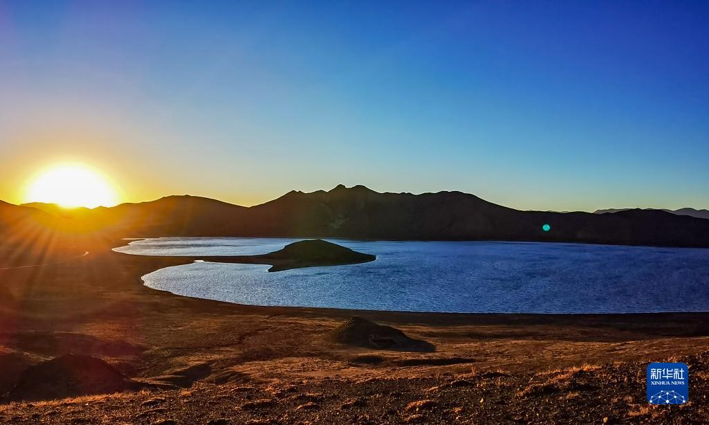 這是夕陽下的羊卓雍錯(12月11日攝)。新華社記者 沈虹冰 攝