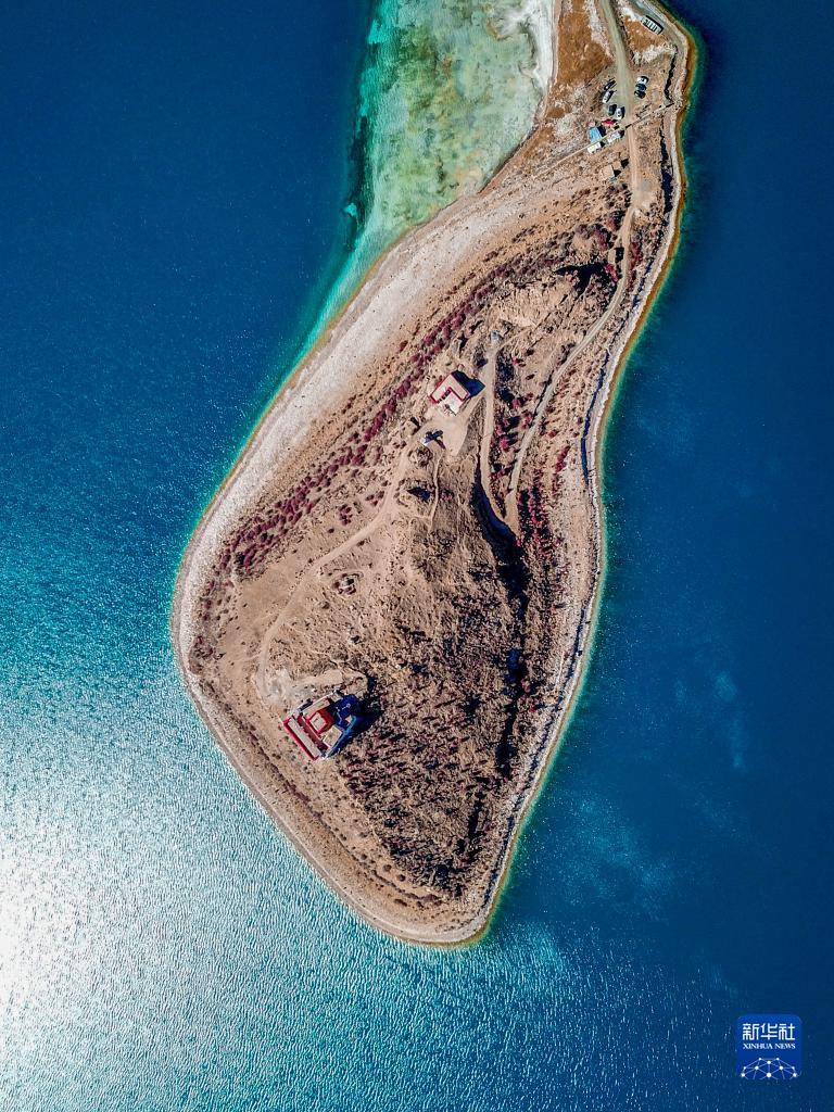 坐落于羊湖北岸一座半島上的日托寺(無(wú)人機(jī)照片,12月11日攝)。新華社記者 姜帆 攝