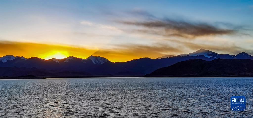 這是夕陽下的羊卓雍錯(cuò)(手機(jī)照片,1月1日攝)。新華社記者 沈虹冰 攝
