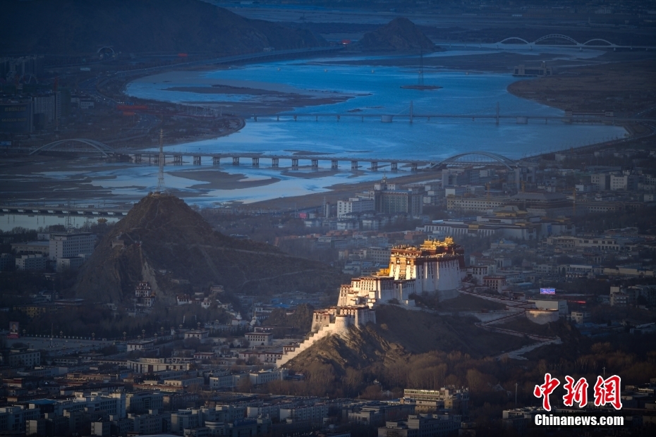越過拉魯濕地眺望布達拉宮(2月24日攝,手機照片)。新華社記者 沈虹冰 攝