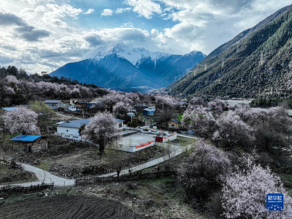 近日,林芝市波密縣古通村漫山遍野桃花盛開(kāi),與高原雪山相映成趣。
