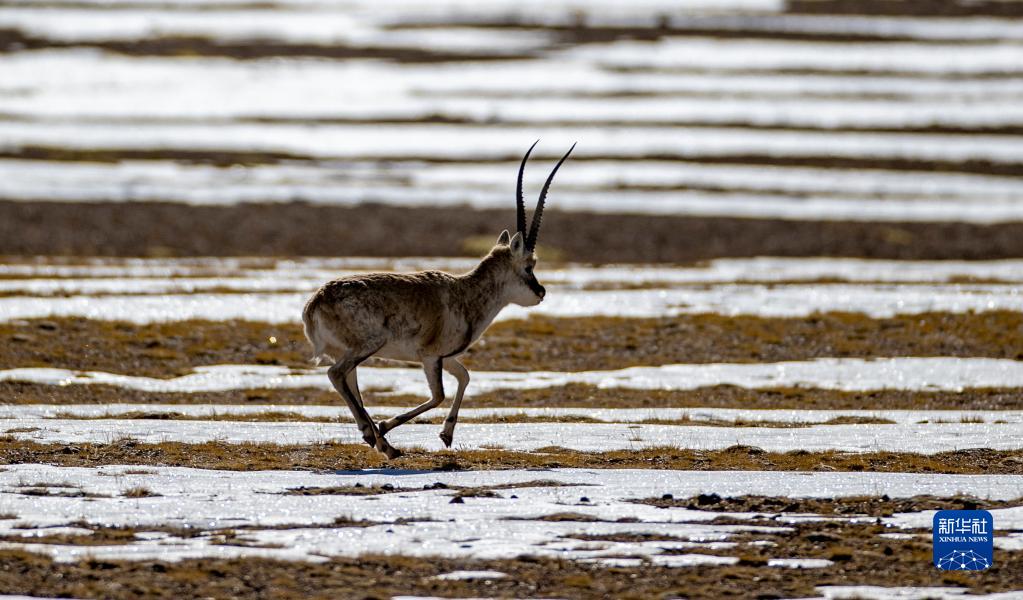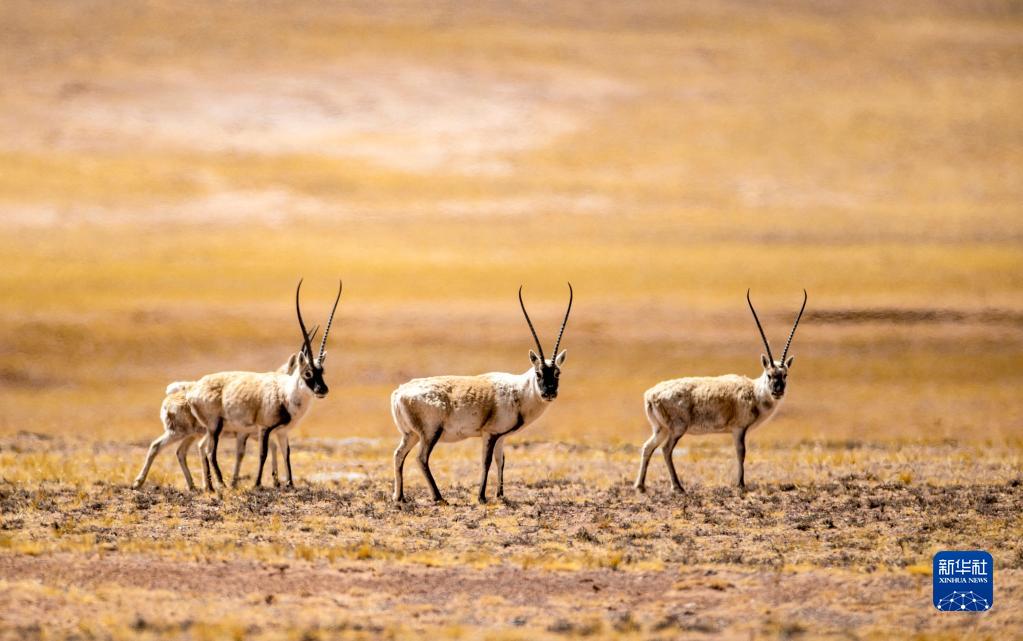這是在羌塘國(guó)家級(jí)自然保護(hù)區(qū)那曲市雙湖縣區(qū)域內(nèi)拍攝到的藏原羚(4月16日攝) 。新華社記者 格桑邊覺 攝
