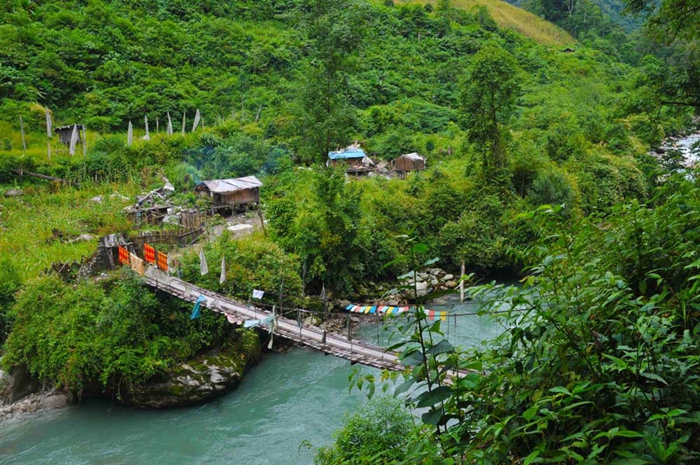 繼續(xù)前行,從大峽谷中的派鎮(zhèn)出發(fā),沿途經過松林口、多雄拉山口、拉格、汗密、老虎嘴、阿尼橋、背崩等地,到達墨脫縣城。